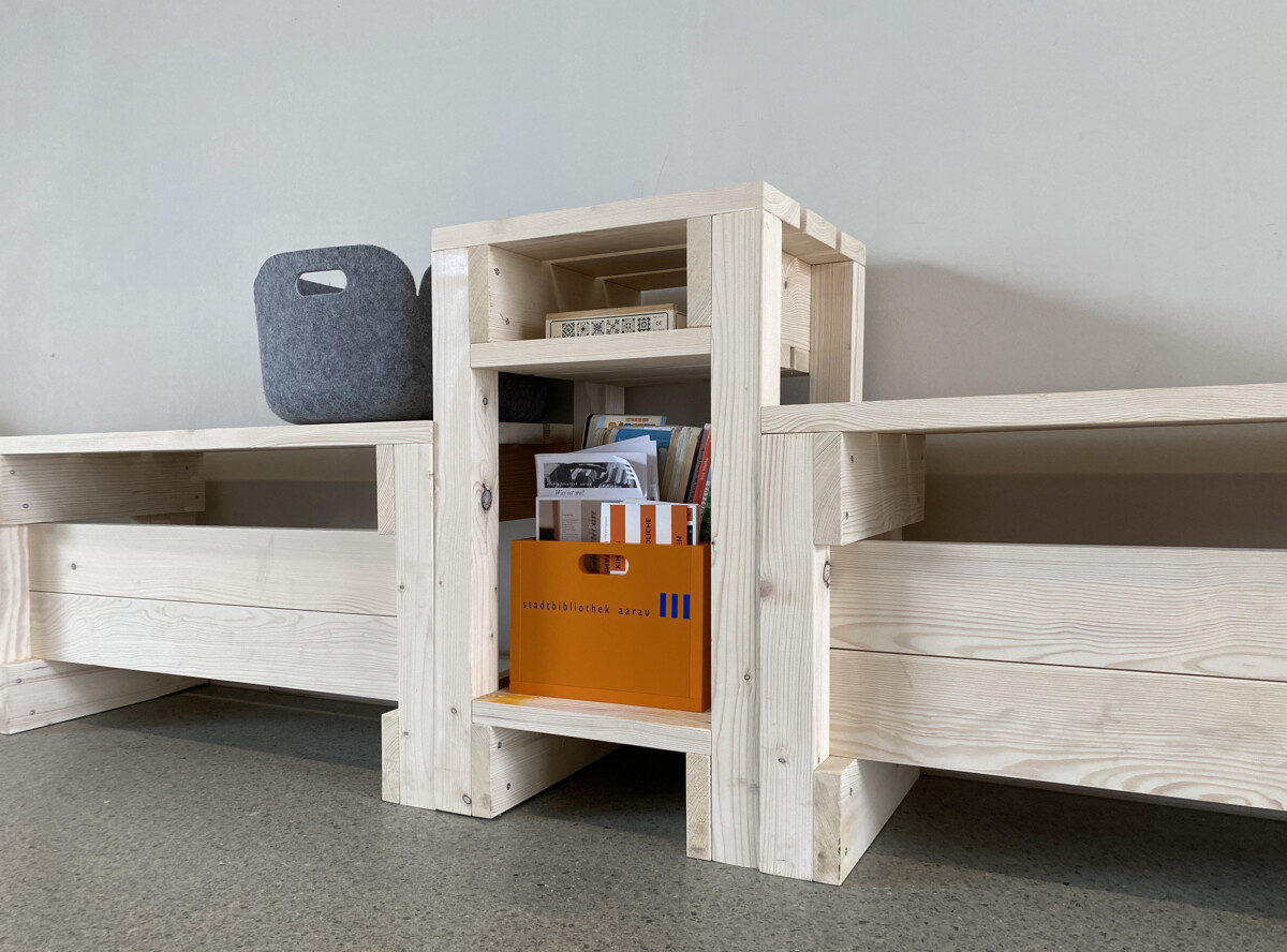 umgestaltung foyer und auffrischung ausstellung „stadtansichten“ in einem partizipativen verfahren. anpassung dauerausstellung „100 x aarau“, einrichtung und ausstattung atelier für vermittlung.